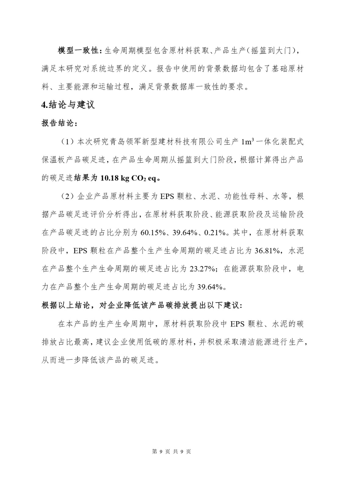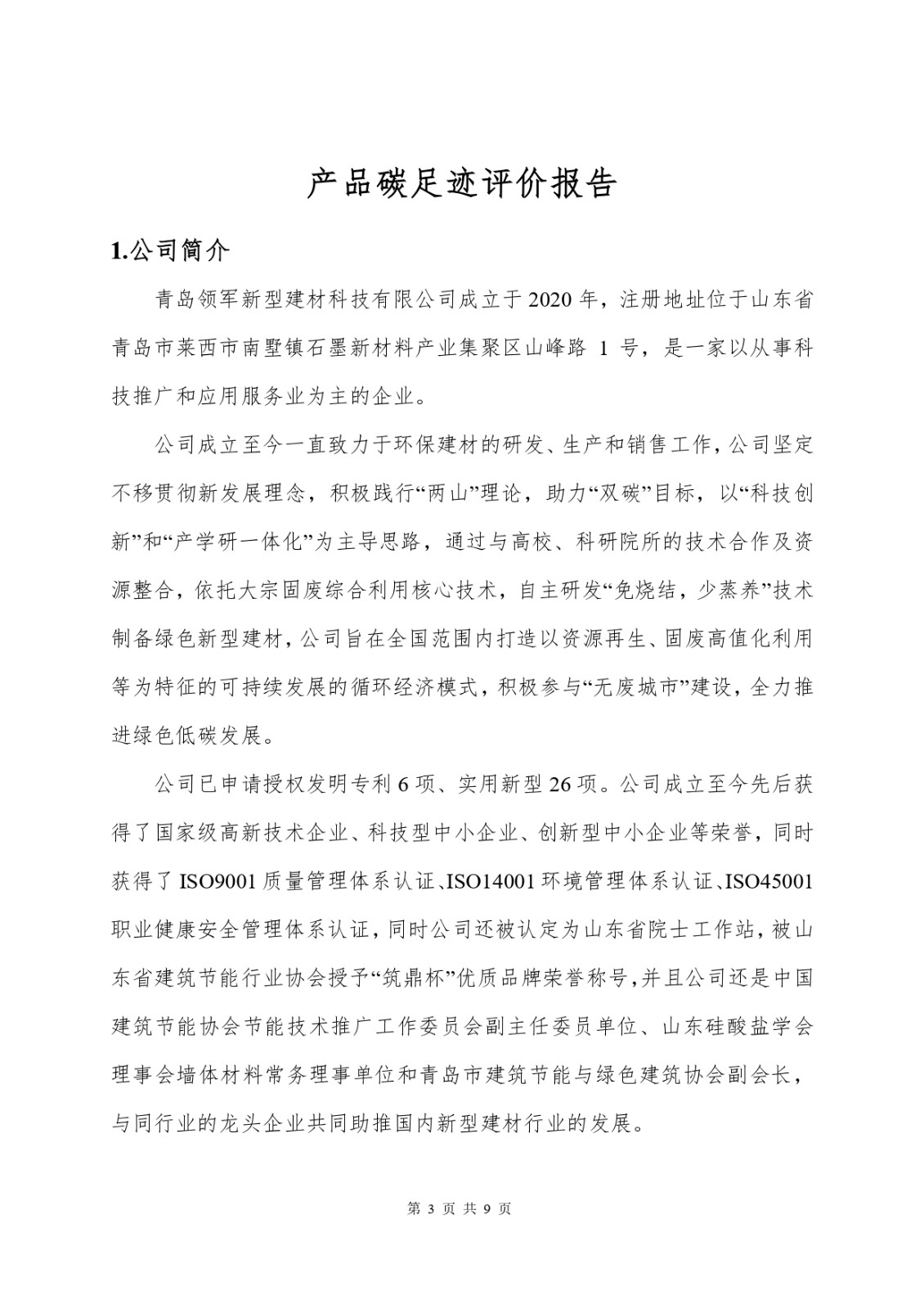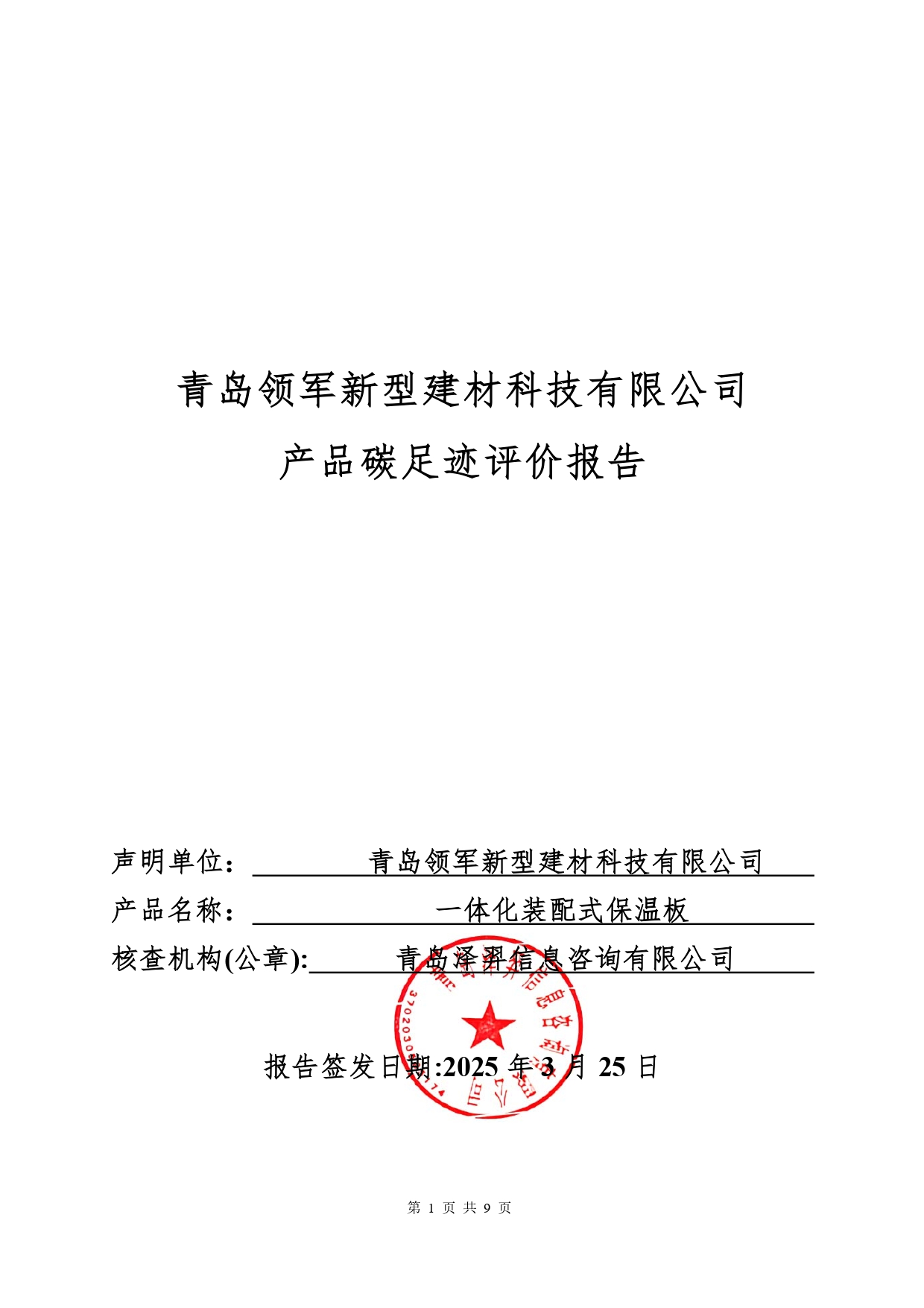 关于青岛领军新型建材科技有限公司产品碳足迹评价报告的公示